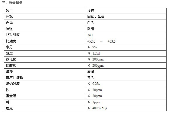 1.结晶葡萄糖或一水葡萄糖,以玉米淀粉为原料,经过糖化、结晶及干燥而成。